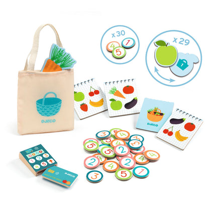 Een fruit- en groentekraam om te doen alsof je koopt en verkoopt. Iedereen heeft zijn eigen rol!
