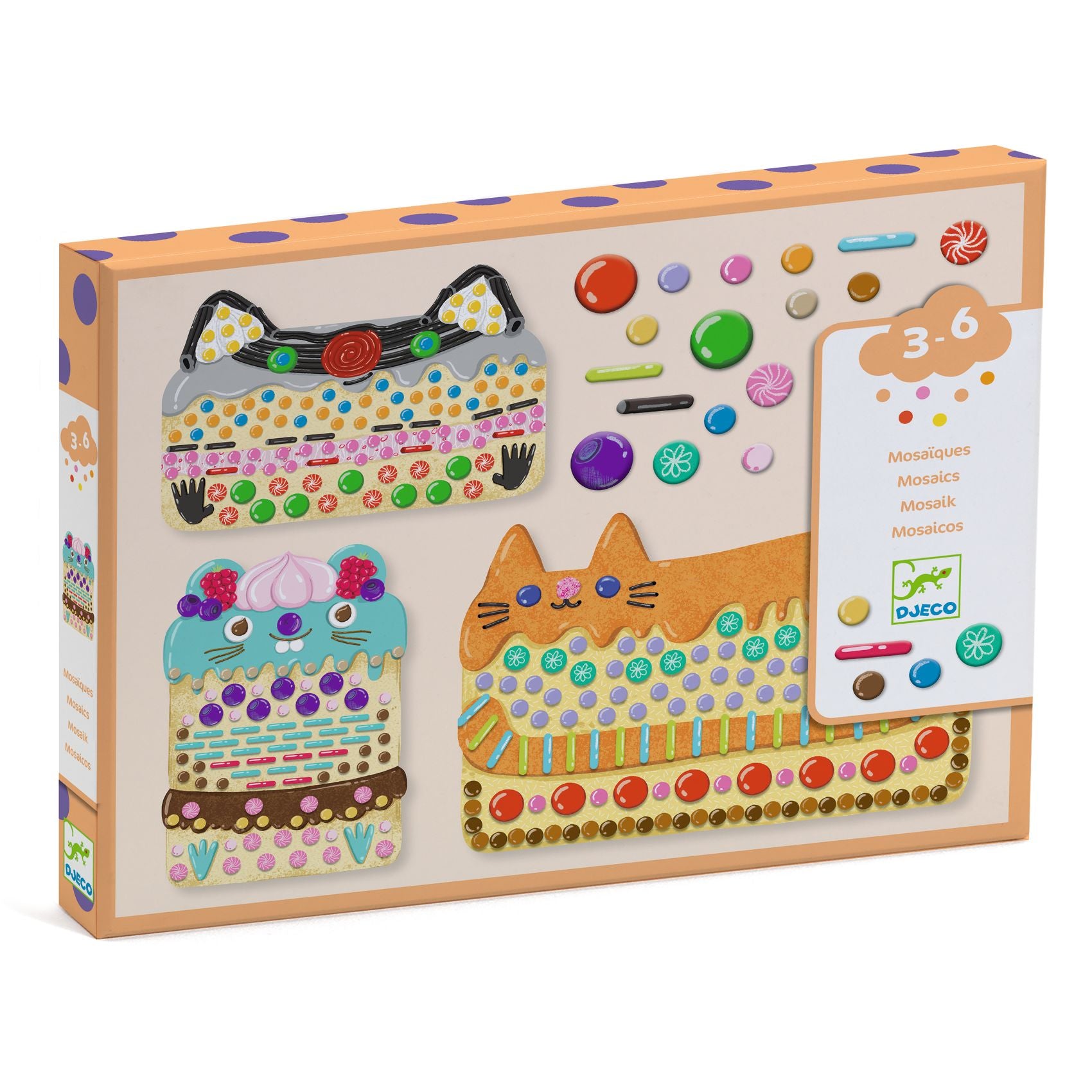 Een collageactiviteit om schattige kleine taartjes te maken en meer te leren over mozaïeken. Plak, volgens het instructieboekje, de gekleurde en geïllustreerde stickers om 3 verrukkelijke vormen te versieren.