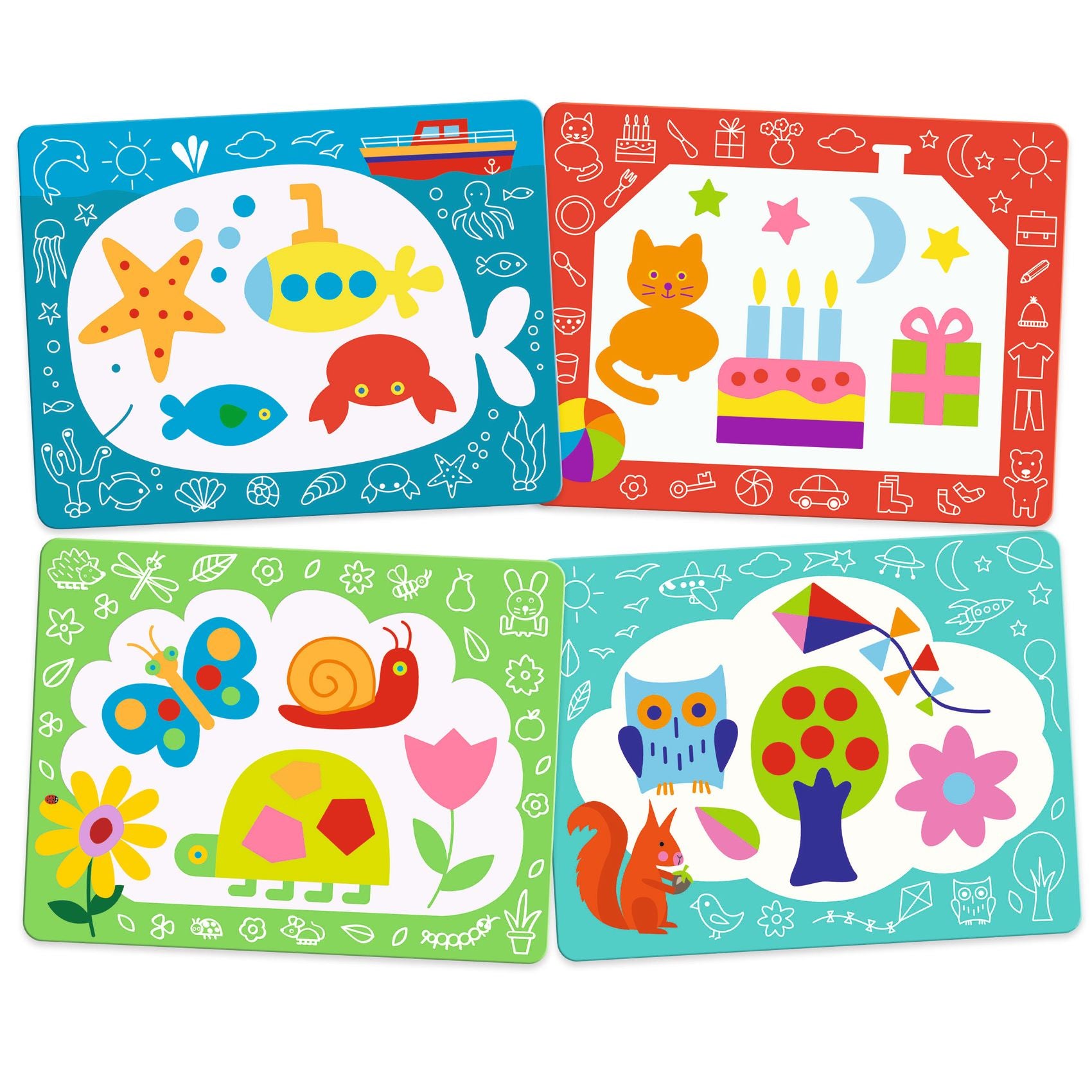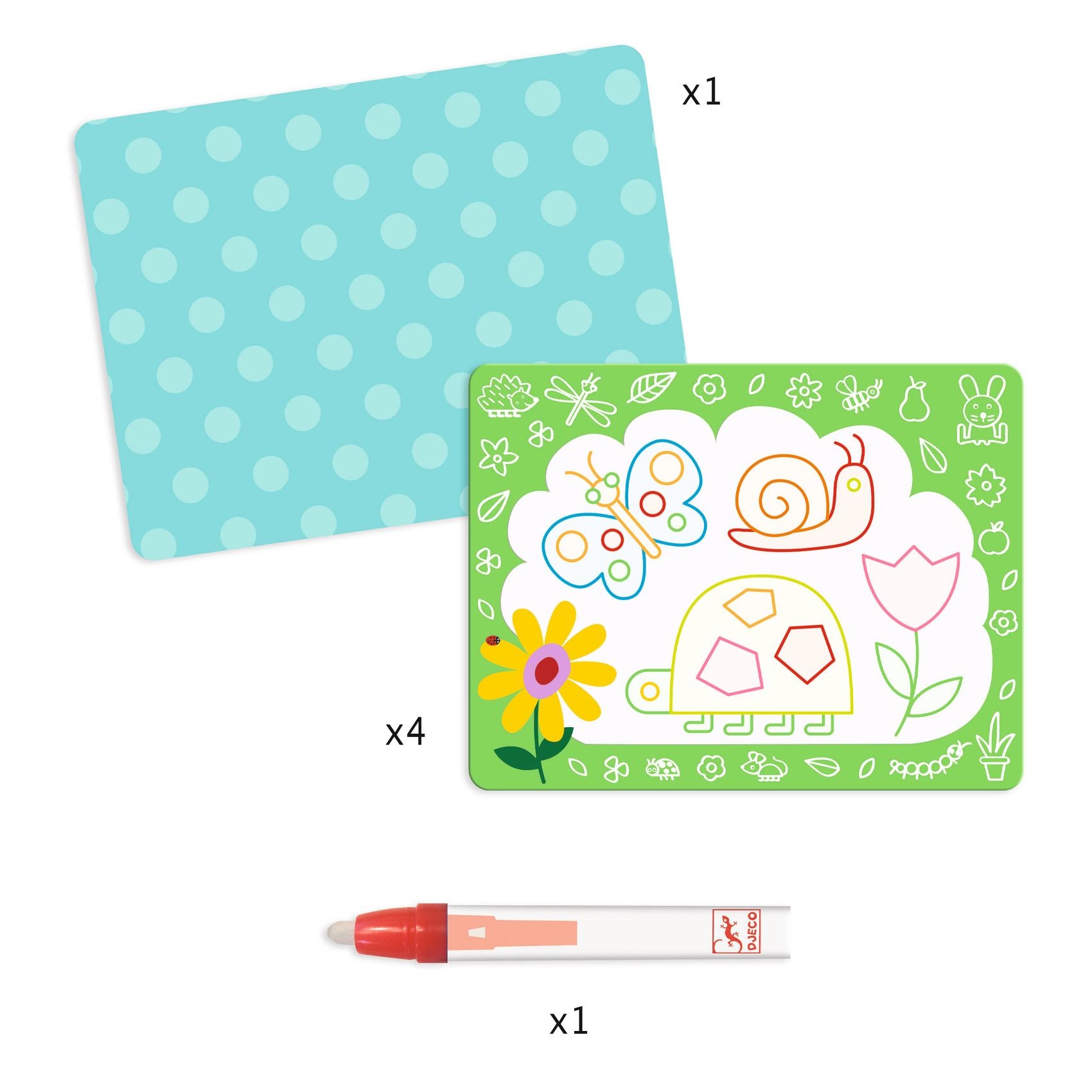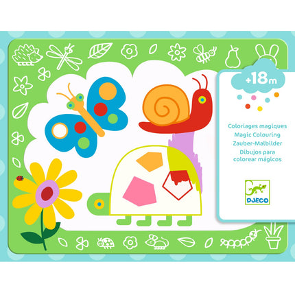 Een waterkleurboekje, geschikt voor kinderen vanaf 18 maanden. Het kind kleurt met de waterstift de witte delen in om te ontdekken wat eronder verborgen zit. Het is magisch: er verschijnen motieven! De platen drogen en het kind kan opnieuw beginnen!