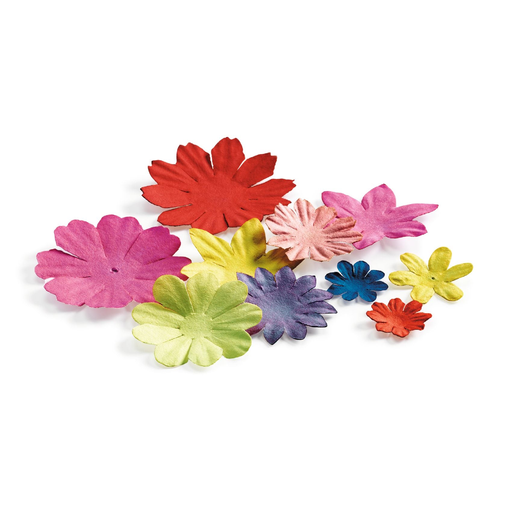 - Vooraf uitgestanste bloemen van geplooid papier in verschillende vormen.