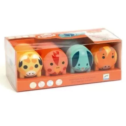 Deze Djeco dierenstempels zijn gemaakt van hoge kwaliteit. De set bevat een kip, konijn, koe en paard. Je hoeft niet bang te zijn voor vlekken want ze zijn afwasbaar.