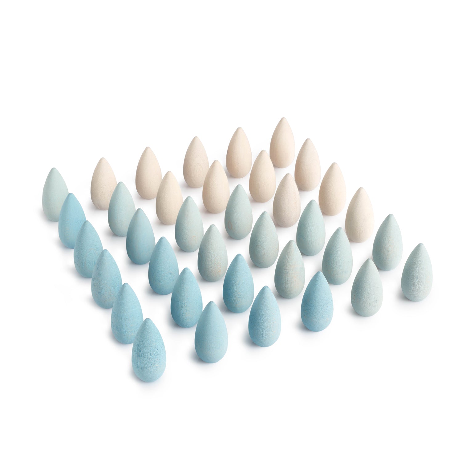 36 mooie houten sneeuwvlokken van Grapat in verschillende tinten wit en blauw. Gebruik ze om de mooiste mandala's te creëren of als aanvulling van je kleine speelwereld.