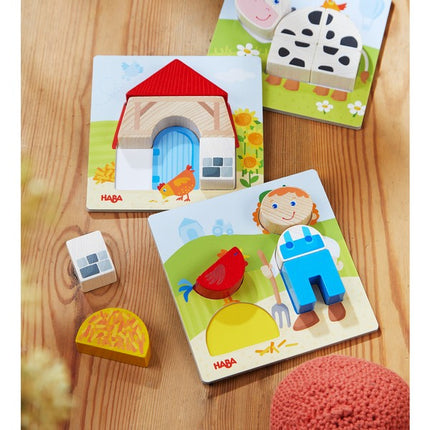 Is dat de buik van de koe? En waar zit de haan? Met het ordeningsspel Boerderij leren kinderen al spelend verschillende vormen en kleuren herkennen. Het ordenen van de plaatjes in de juiste uitsparingen op de legborden is leuk en bevordert al spelend de fijne motoriek. Het legspel is bovendien mooi vormgegeven met kleurrijke legborden en stevige, houten blokken in allerlei vormen, maten en kleuren. De blokken zijn ook perfect voor vrij spel, of om te combineren met andere bouwblokken. Een feest voor zowel de ogen als de handen!