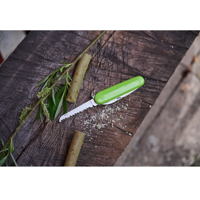 Een echt zakmes van Haba Terra Kids voor kleine avonturiers, met roestvrije lemmeten. Het zakmes heeft ook een ringoogje voor bevestiging aan koord, rugzak of lussen voor broekriem. Het formaat, gewicht en ergonomie zijn volledig aangepast aan kleine kinderhanden.