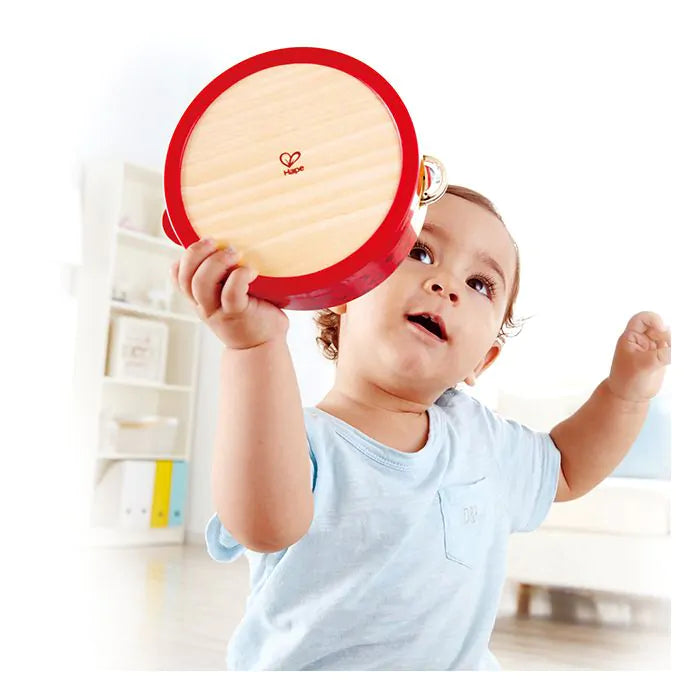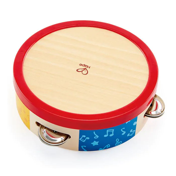 Het duurzame houten speeloppervlak zorgt ervoor dat de tamboerijn niet te luid klinkt, waardoor het perfect is voor kleine muzikanten met gevoelige oren. Of je nu met je hand op het houten oppervlak slaat of de tamboerijn zachtjes rammelt om het geluid van regen na te bootsen, het blijft leuk en leerzaam.