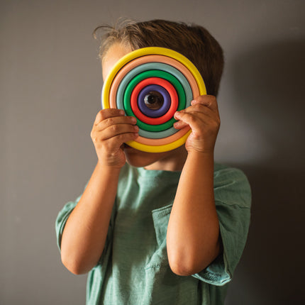 De Little L Cirkels in levendige kleuren zijn educatief speelgoed dat jonge kinderen uitnodigt om te ontdekken, bouwen en creëren. Deze set bestaat uit verschillende gekleurde cirkels die gestapeld, gesorteerd en gecombineerd kunnen worden, wat de fijne motoriek, hand-oogcoördinatie en kleurherkenning stimuleert. Het speelse ontwerp met heldere, opvallende kleuren spreekt kinderen aan en maakt het spelen extra aantrekkelijk.