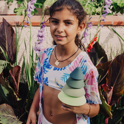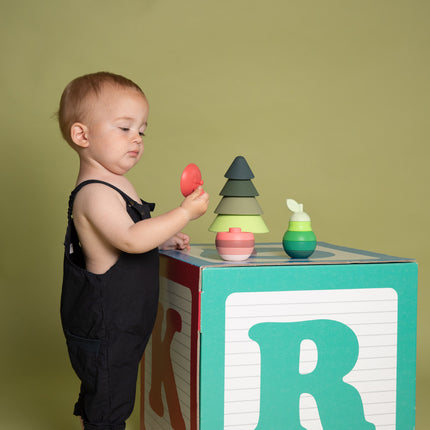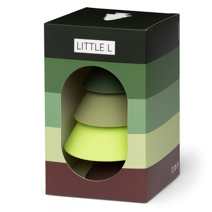 e Little L Stapeltoren Dennenboom – Groen is een stijlvol, educatief en kindvriendelijk speelgoed dat perfect past bij de natuurlijke en rustgevende uitstraling van moderne kinderkamers. Deze stapeltoren is ontworpen in de vorm van een dennenboom en bestaat uit meerdere stapelbare ringen in zachte groentinten die samen een herkenbare boomstructuur vormen. Het minimalistische design maakt dit speelgoed niet alleen functioneel, maar ook esthetisch aantrekkelijk.
