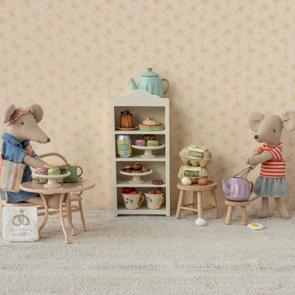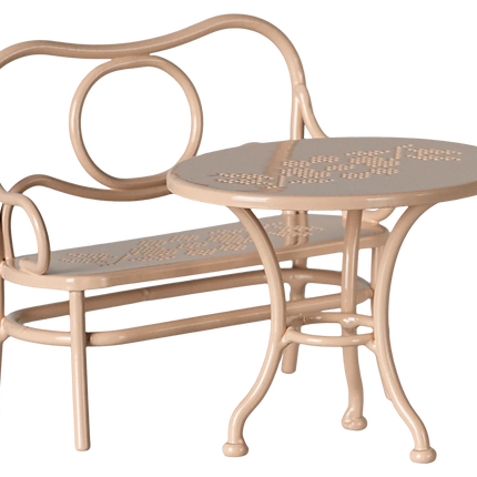 Cafésetmeubels die precies passen bij muisjes van Mama- en Papagrootte. De set bestaat uit een bankje en een tafeltje, en is de perfecte plek om te genieten van een gezellig middagtentje.
