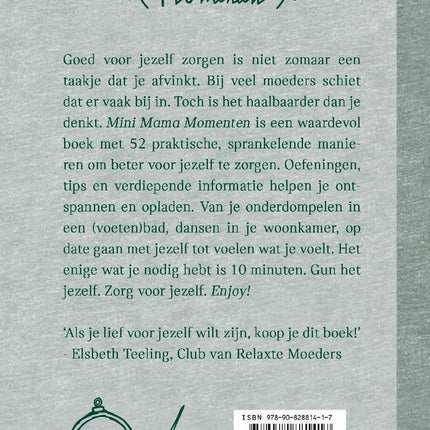 Het boek Mini Mama Momenten reikt 52 manieren aan om beter voor jezelf te zorgen. Ieder Moment is opgebouwd uit een oefening (doemoment), tips en verdiepende informatie (leesmoment) en ruimte voor aantekeningen (invulmoment). Van je onderdompelen in een (voeten)bad, dansen in je woonkamer, op date gaan met jezelf tot voelen wat je voelt. Het enige wat je nodig hebt is 10 minuten. Gun het jezelf. Zorg voor jezelf. Enjoy!