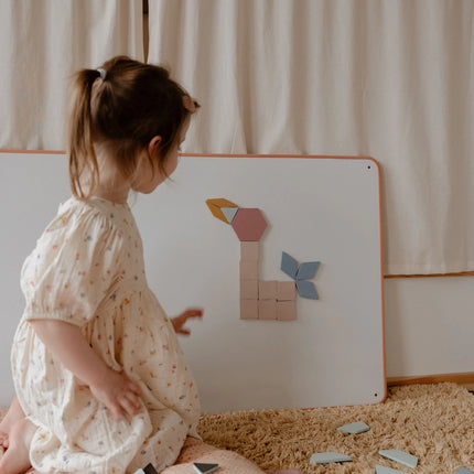 Magnetic Puzzle is een boeiende puzzelset bestaande uit 48 stukjes met diverse vormen en kleuren, voorzien van een magnetische onderzijde. Deze set stimuleert kinderen niet alleen om te puzzelen en de leukste dieren en voertuigen te maken volgens hun verbeelding, maar biedt ook een ontdekkingsreis in de wereld van magnetisme. Ideaal voor het ontwikkelen van puzzelvaardigheden en het prikkelen van de verbeelding terwijl kinderen leren over de kracht van magneten."