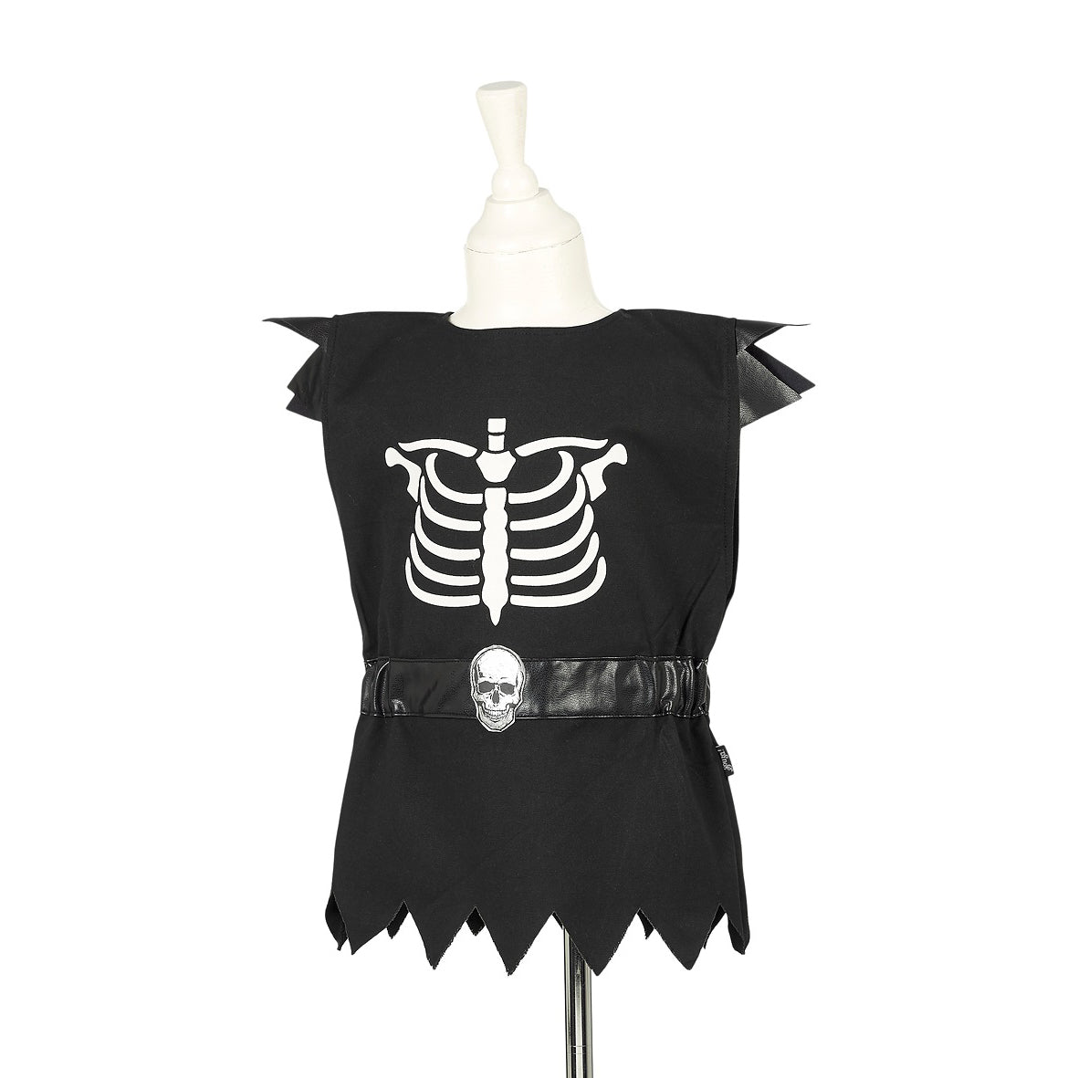 Een handige, zwarte tuniek met skelet om je vrienden, leerkrachten en mama`s en papa`s de stuipen op het lijf te jagen!