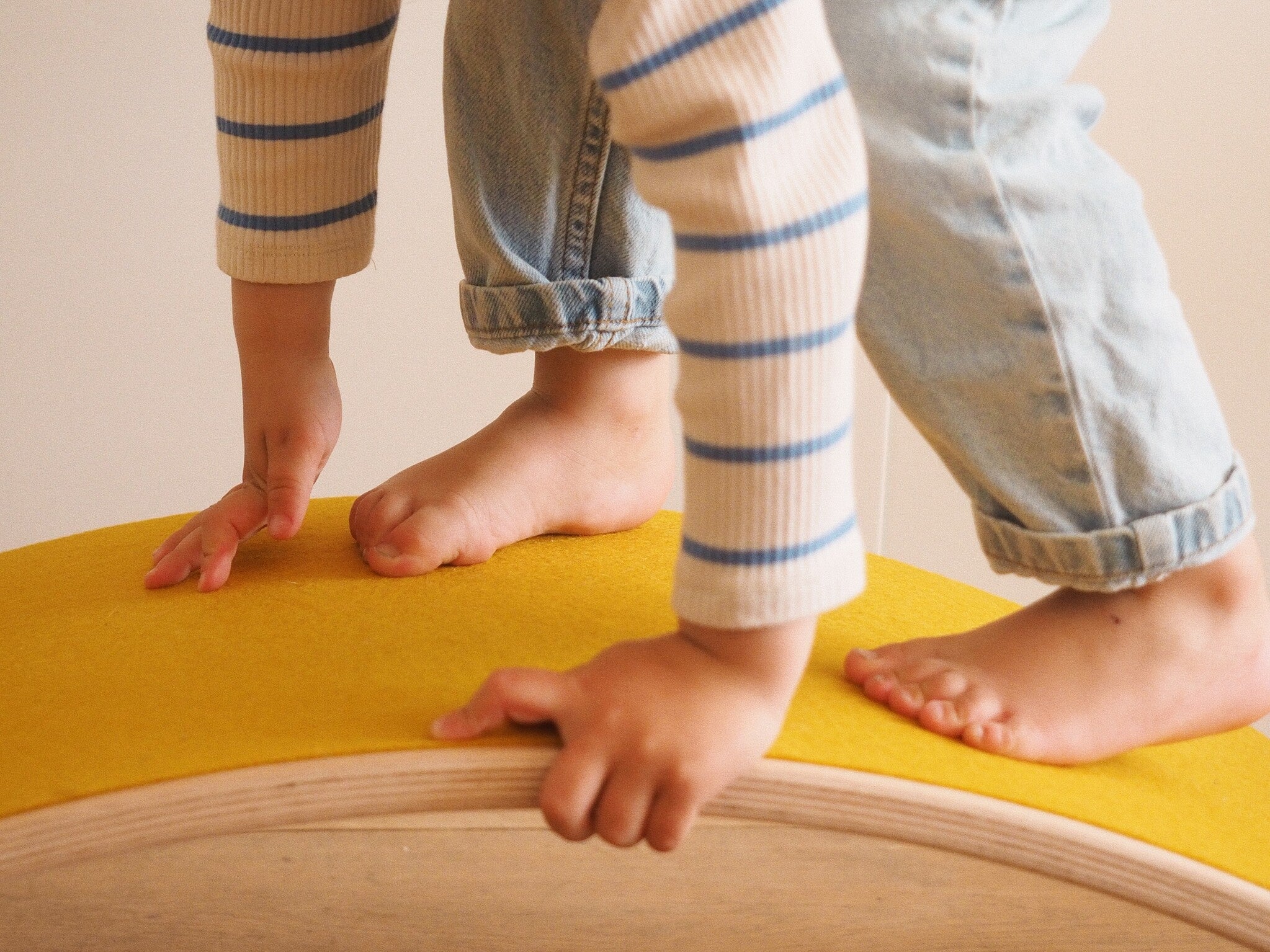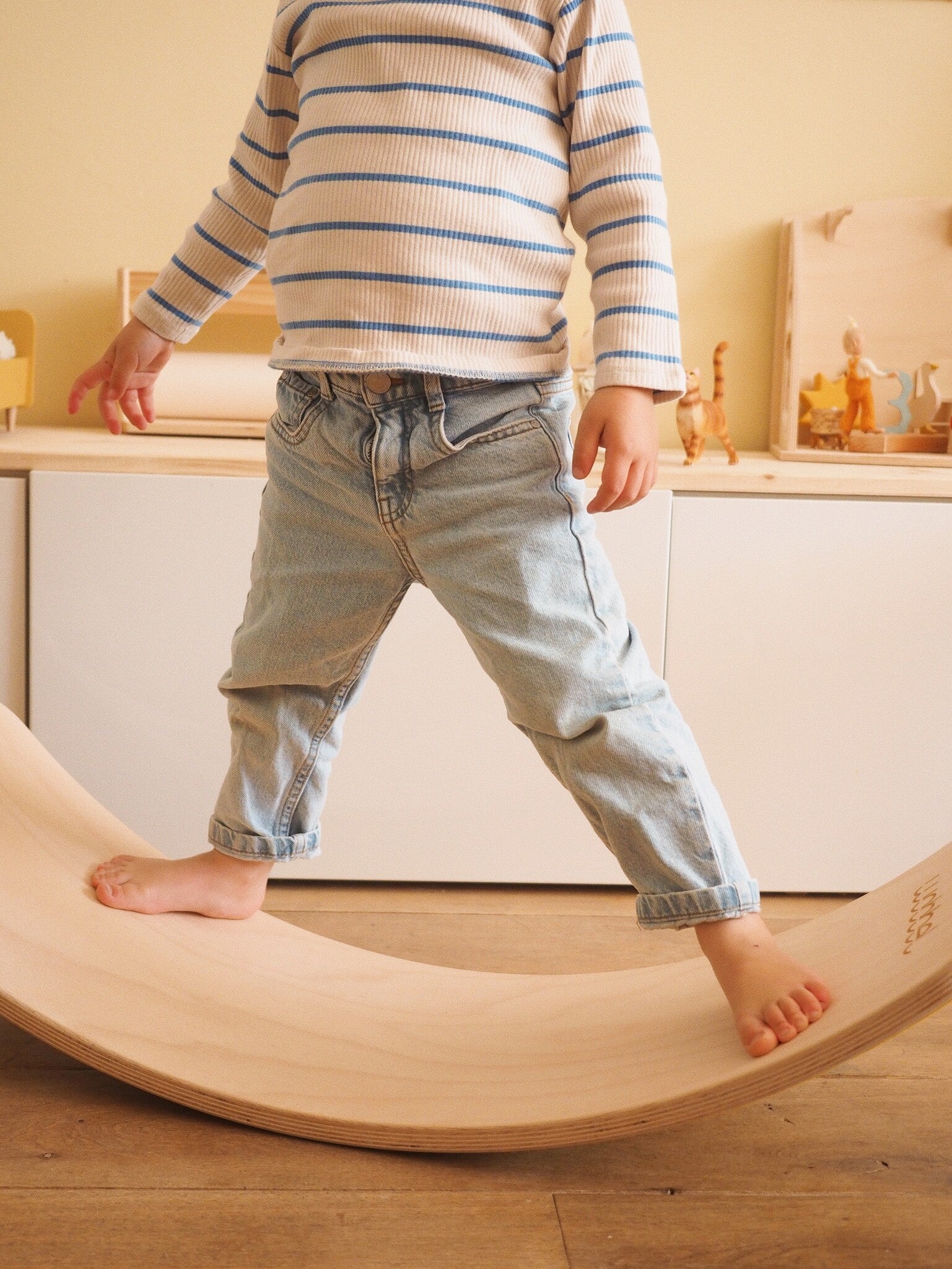 De Wobbel is een fijn, houten balance board. Het nodigt uit tot spelen en bewegen, maar ook tot rusten en schommelen.