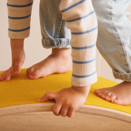 Deze uitvoering is de Wobbel PURE met vilt in de kleur VILT MOSTERD