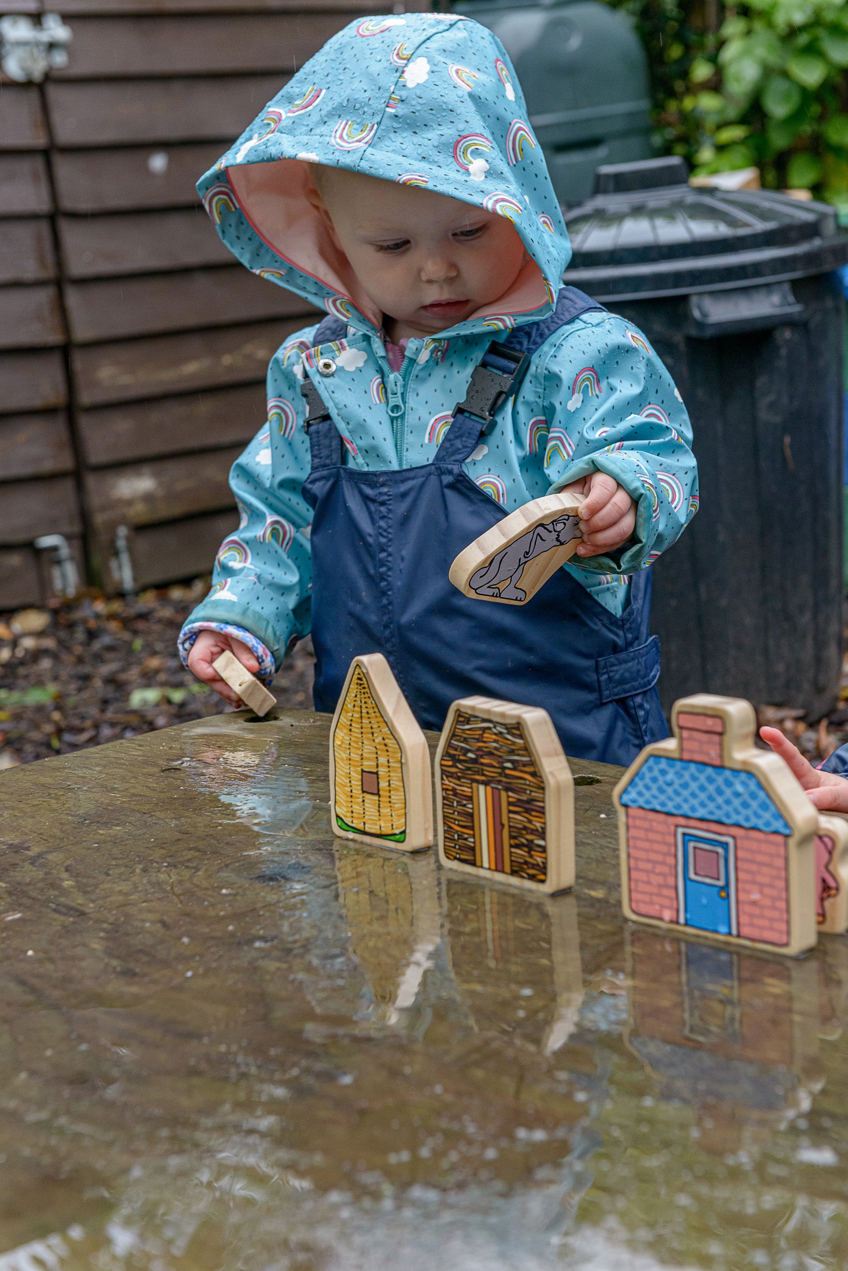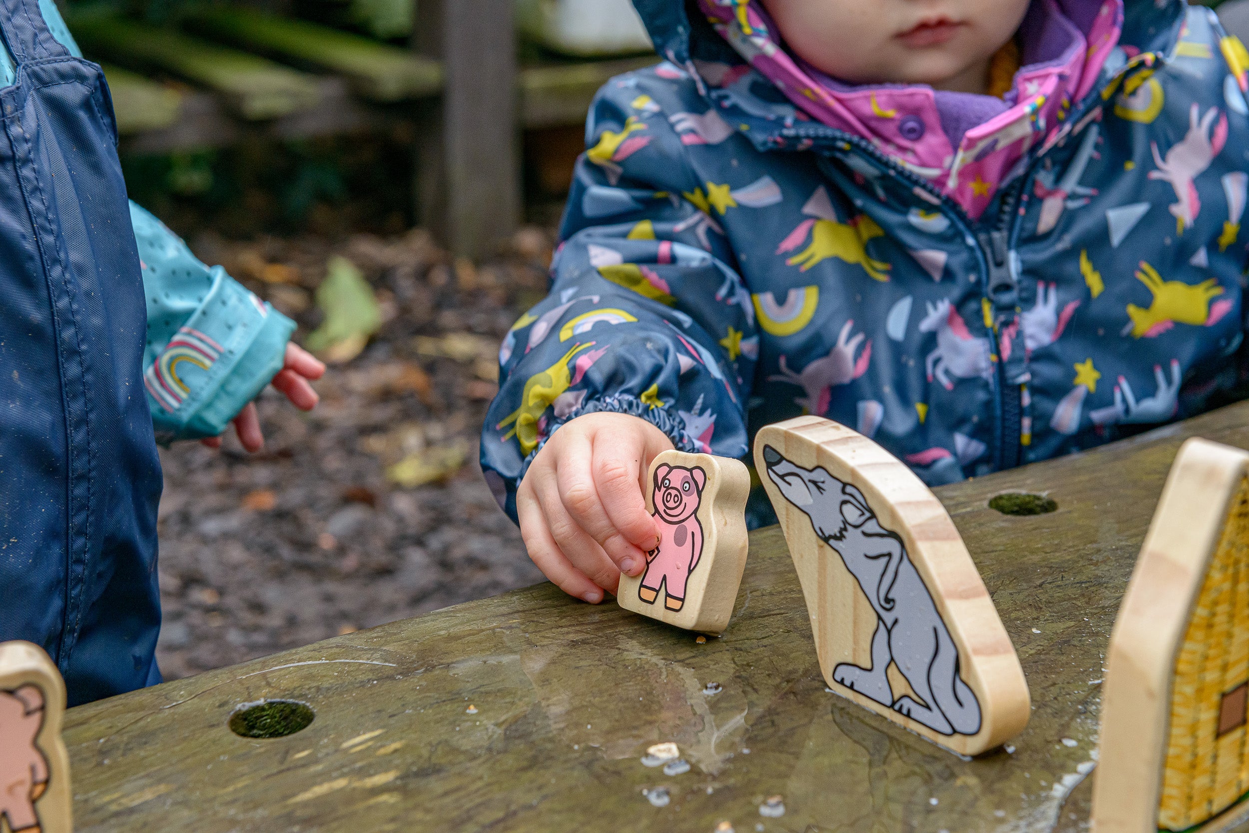 Met deze boeiende en tactiele figuren uit het verhaal van de Drie Biggetjes kunnen kinderen het verhaal opnieuw vertellen tijdens zelfgestuurd spel en andere nieuwe versies ontdekken die ze zelf kunnen creëren.