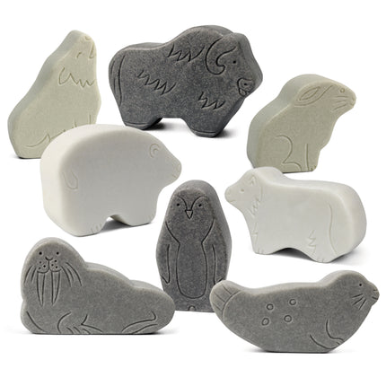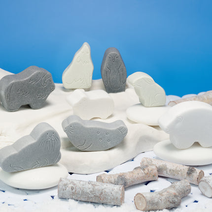 Met hun natuurlijke kleuren en fijne details zijn ze perfect voor gesprekken, rollenspellen en kleine wereldjes vol fantasie. In de set vind je: een poolvos, poolhaas, poolwolf, muskusos, pinguïn, ijsbeer, zeehond en walrus.
