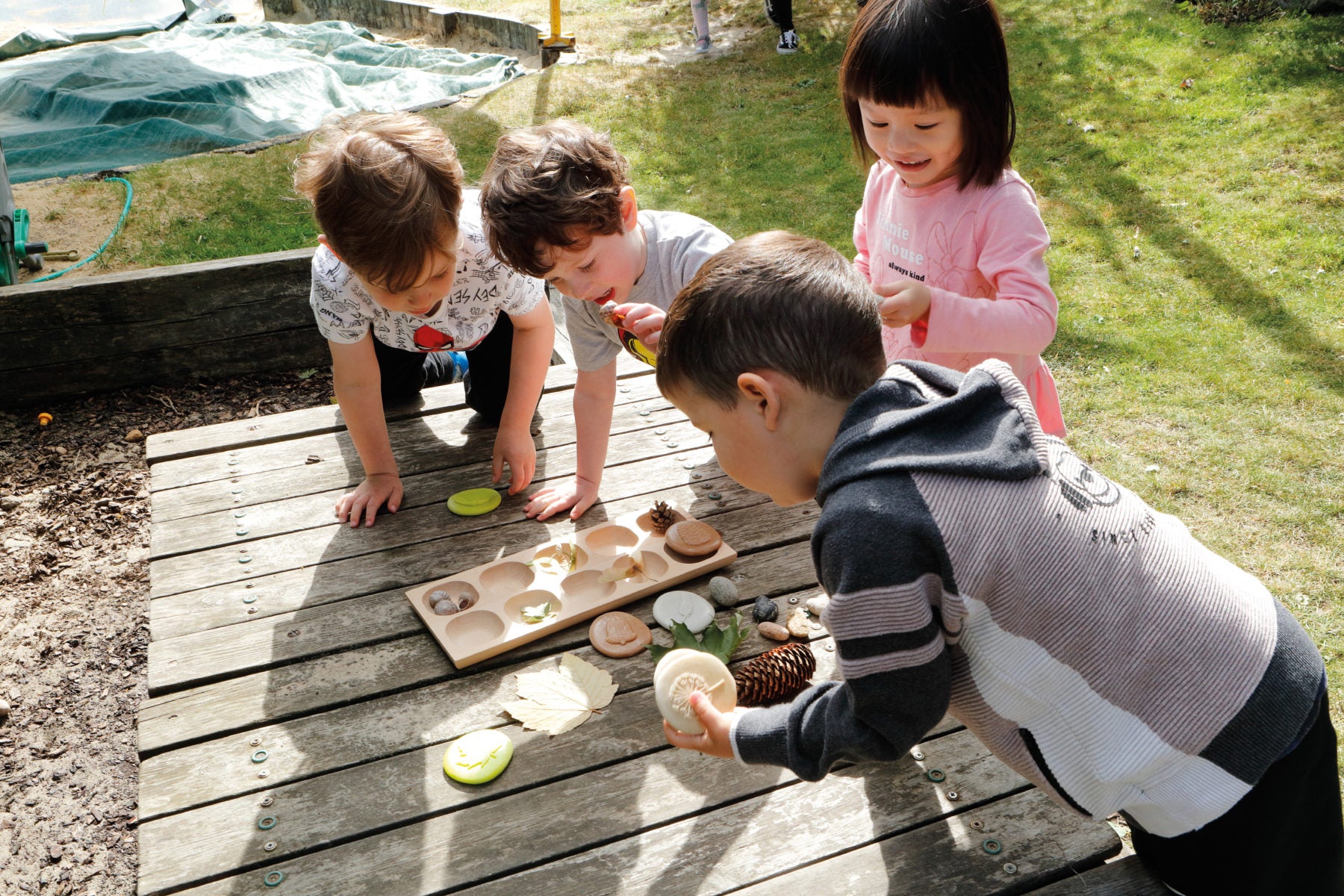 Ontworpen om buiten te leren, bijvoorbeeld in een buitenklas en onderzoekend te spelen. Ze zijn duurzaam genoeg om te worden gebruikt in water, aarde, modder en klei, en zijn gemakkelijk schoon te maken. Heerlijk zintuiglijk, de details op de stenen kunnen zowel worden gevoeld als gezien. Ga op natuurjacht en vergelijk met de echte dingen, maak afdrukken in speeldeeg en wrijf met waskrijtjes. Kinderen zullen genieten van dergelijke activiteiten en leren tegelijkertijd over de natuur.